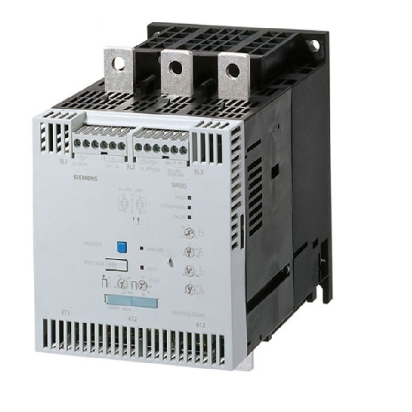 کمپانی زیمنس جهت کلید زنی موتورهای صنعتی اقدام به طراحی و تولید سافت استارتر نموده است، این محصول دارای توان کاری 45 کیلو وات سه فاز می باشد که با استفاده از تریستور های موازی معکوس و همچنین کنترل جریان و زاویه فاز ورودی، گشتاور موتور با توان حدود 33.1 اسب بخار یا 45 کیلو وات را تنظیم می نماید. سافت استارتر زیمنس مدل siemens 3RW4074 علاوه بر قابلیت کنترل استارت نرم دارای ویژگی کنترل گشتاور موتور در هنگام توقف به عبارت صحیح تر سافت استاپ و نیز سیستم یکپارچه اتصال در تیغه های کمکی می باشد.